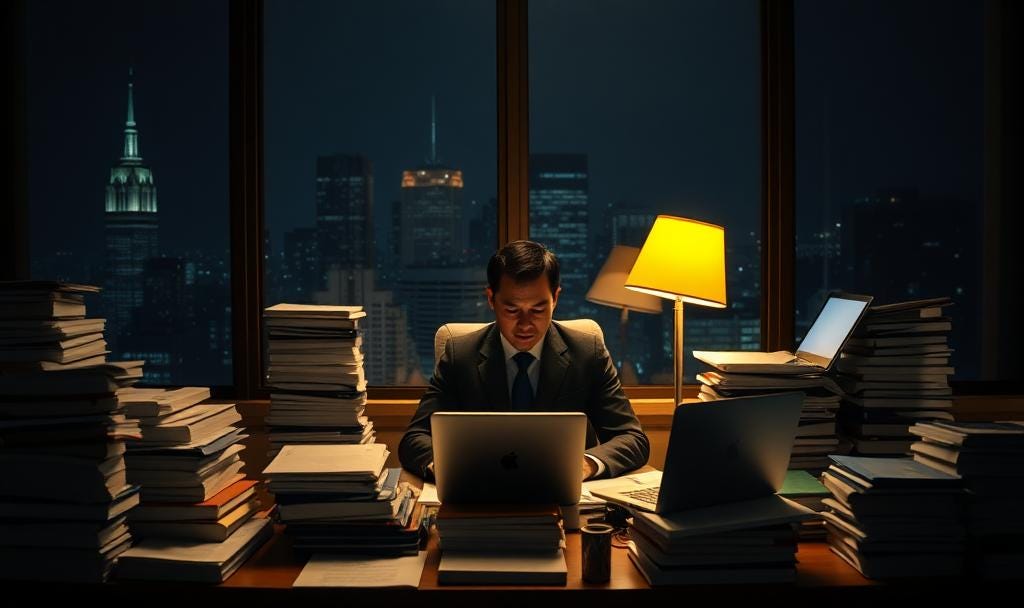 Your spouse texts asking when you'll be home for dinner, but you're still buried in client files that should have been finished hours ago.